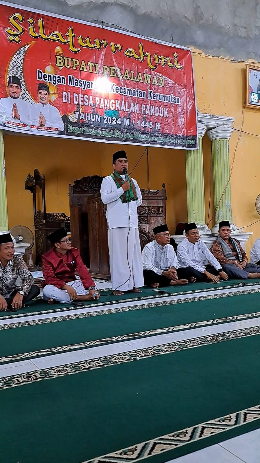 Pelalawan – Lakukan kunjungan Safari Ramadhan ke Masjid Taqwa Dusun Belimbing, Desa Pangkalan Panduk, Kecamatan Kerumutan, Jum’at (15/3/2024 ). Bupati Pelalawan H. Zukri SE sampaikan kabar gembira pembangunan jalan aspal di Kecamatan Kerumutan.