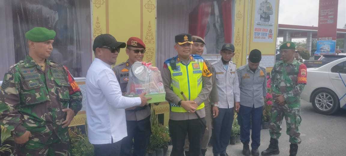 Dikesempatan itu, Bupati Zukri dan rombongan memberikan buah tangan atau oleh-oleh untuk para petugas yang sedang melaksanakan tugas di Posko Penjagaan arus mudik lebaran 2024.