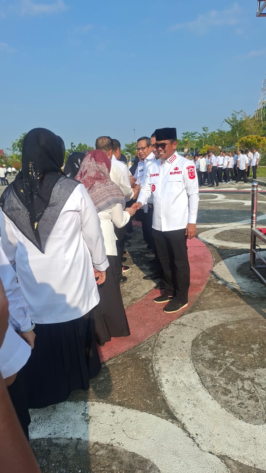 Pelalawan – Bupati Pelalawan H. Zukri, SM.,MM memimpin apel pagi sekaligus kegiatan halal bihalal bersama seluruh Aparatur Sipil Negara (ASN) di lingkungan Pemerintah Kabupaten Pelalawan, Rabu (25/3/2026). Kegiatan ini dilaksanakan di halaman Kantor Bupati Pelalawan pada hari pertama masuk kerja setelah cuti bersama Hari Raya Idul Fitri 1447 Hijriah.