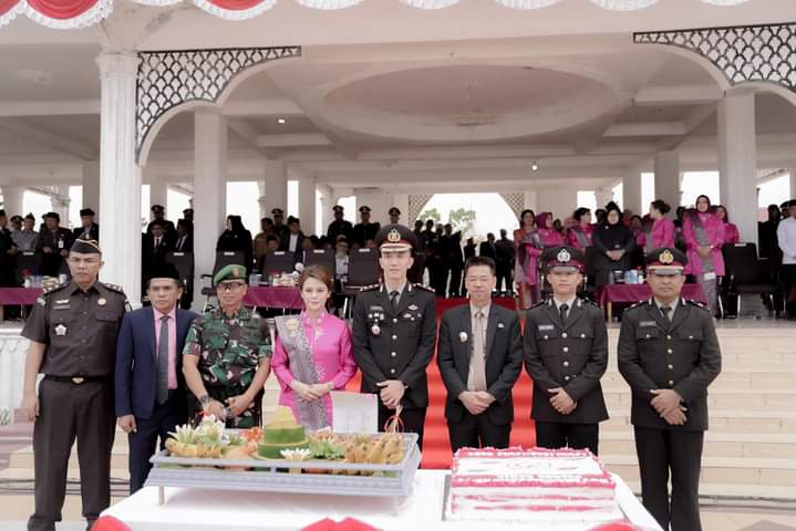 HUT Bhayangkara ke-78 yang bertemakan “Polri presisi mendukung percepatan tranformasi ekonomi yang inklusif dan berkelanjutan menuju Indonesia Emas” turut dihadiri ketua DPRD Rohil Maston, Dandim 0321 Rohil Letkol Kav Nugaraha Yudha Prawiranegara S.IP, Sekda Rohil H Fauzi Efrizal, Kasi BB Kejari Rohil Abu Abdurachman SH, Forkopimda, kepala OPD, Ormas, OKP dan berbagai unsur lainnya.