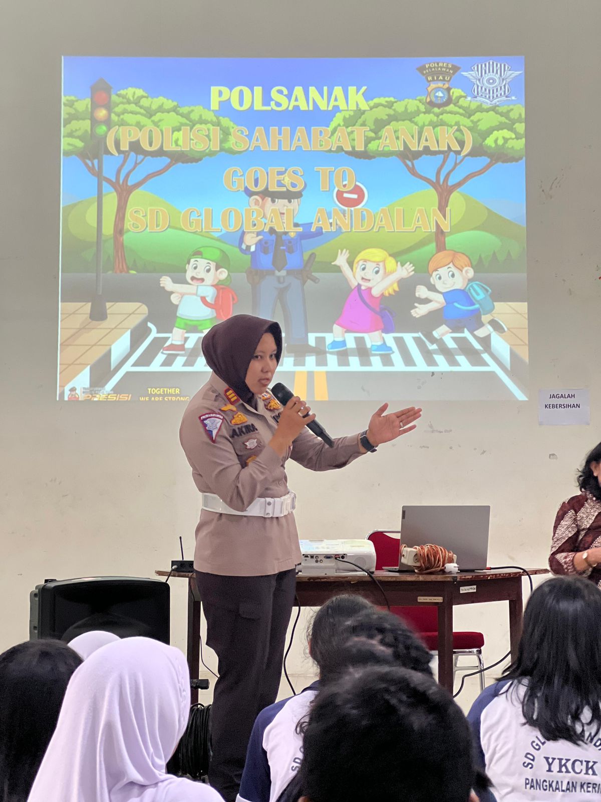 Siswa-siswi SD Global Andalan Pangkalan Kerinci terlihat sangat serius dalam mendengarkan paparan tersebut, hal ini menunjukkan antusiasme mereka terhadap kegiatan Polisi Sahabat Anak dan menunjukkan minat mereka dalam memahami aspek-aspek keamanan dan keselamatan berlalu lintas.