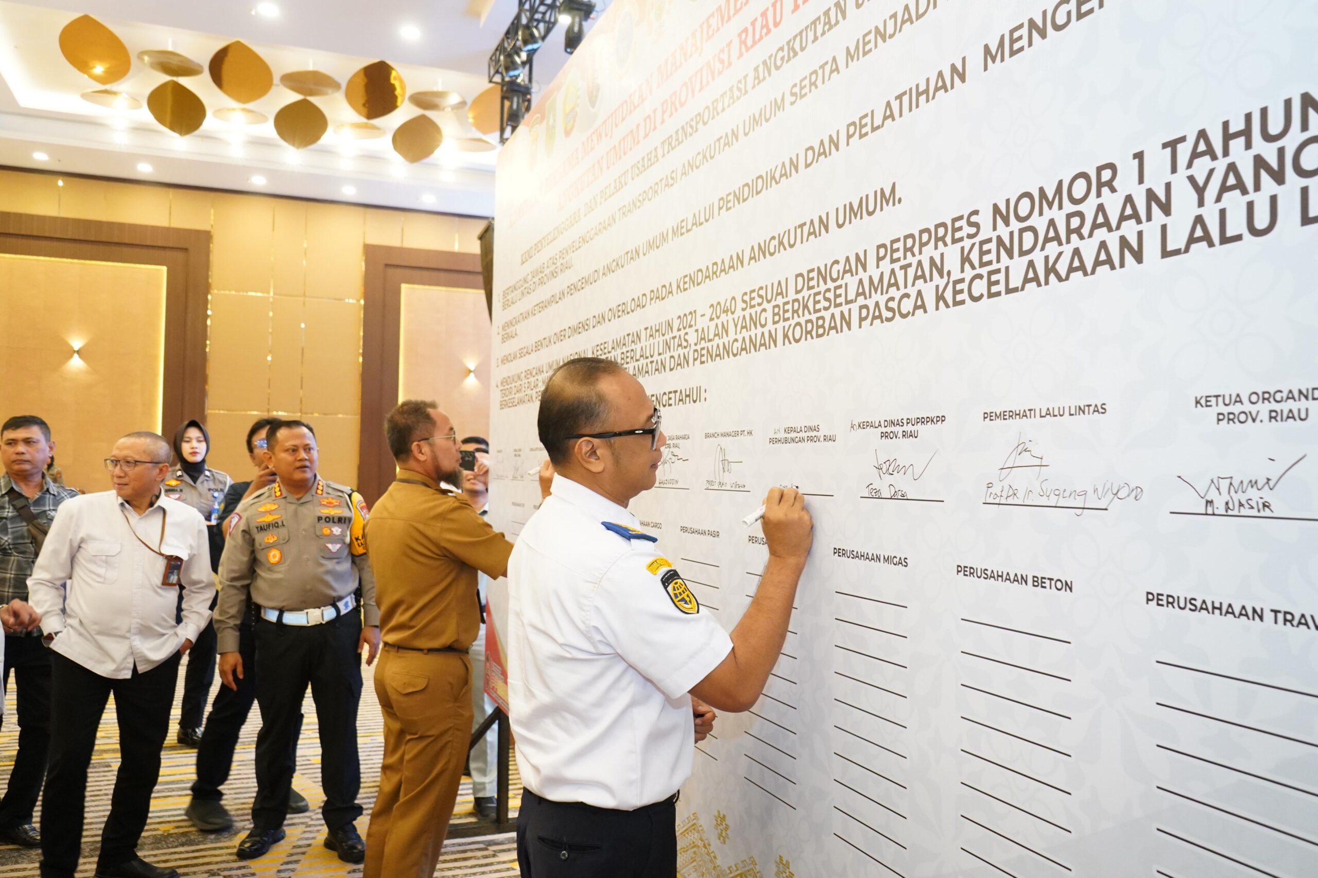 Dalam kegiatan ini dilaksanakan juga penandatangann komitmen bersama para pengusaha angkutan umum dan stakeholder terkait untuk bersama-sama mewujudkan Kamseltibcar lantas yang kondusif di provinsi Riau. Selain itu dilaksanakan juga FGD dengan menghadirkan para Narasumber yang ahli dan berkompeten di bidangnya yang tergabung dalam 5 Pilar.