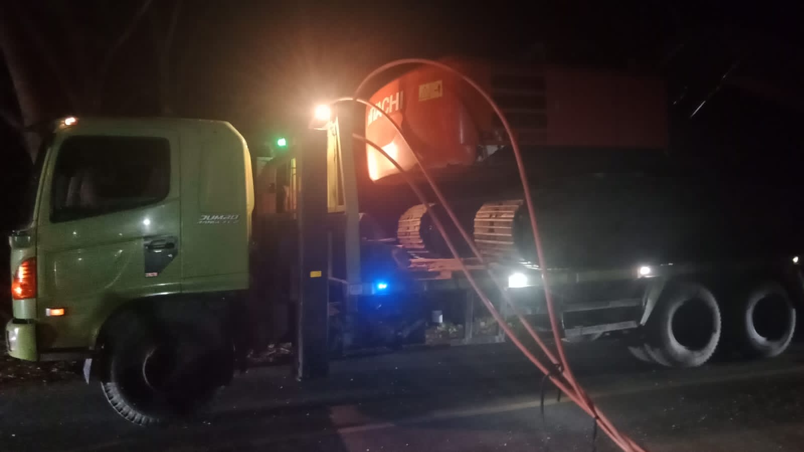 Alat berat itu diamankan ditandai diangkat trado truck pengangkut alat berat.