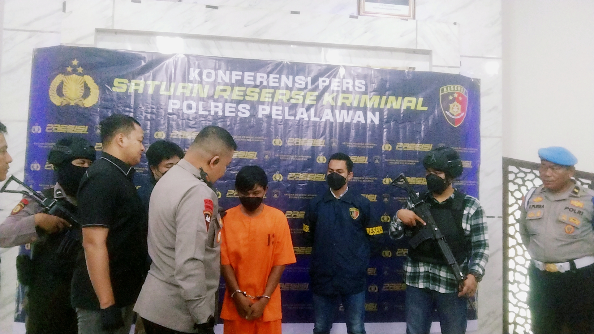 Kejadian berawal dari laporan masyarakat tentang penemuan mayat di rumah Arjon Gule Desa Pesaguhan Kecamatan Pangkalan Lesung Kabupaten Pelalawan Riau pada Minggu (14/04/2024). Team Opsnal langsung bergerak ke Tempat Kejadian Perkara dan setelah mengumpulkan keterangan saksi dan bukti-bukti di lapangan, mereka berhasil mengejar pelaku yang melarikan diri ke rumah keluarganya di Sorek Pangkalan Kuras dengan niat melarikan diri ke Pulau Nias.