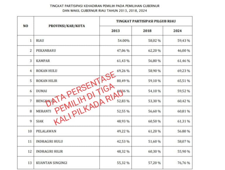Menurut data yang dihimpun dari halaman website KPUD Provinsi Riau, menyebutkan Bahwa Kabupaten Rokan Hulu menjadu Kabupaten dengan tingkat pemilih tertinggi kedua di Riau dengan persentase 69,23%, dibandingkan dengan Pemilukada tahun-tahun sebelumnya,