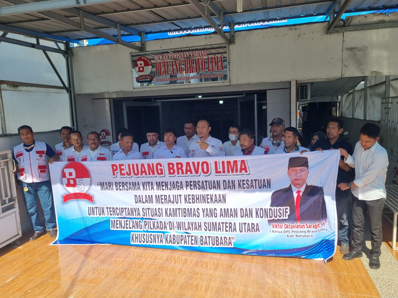 Batu Bara – Selasa tanggal 11 Juni 2024 pukul 10.00 wib Ketua DPC Pejuang Bravo 5 Kabupaten Batubara Victor Oktavianus, SH beserta pengurus dan anggota yang berjumlah 50 orang melaksanakan Deklarasi Pernyataan Sikap Pilkada Damai 2024 di Sekretariat DPC Pejuang Bravo 5 Batubara Jalan Jenderal Sudirman No 64 Indrapura Kecamatan Air Putih.