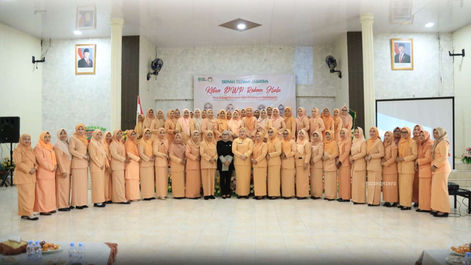Acara ditandai dengan penandatanganan berita acara serah terima jabatan dari Ny. Siska Irdaningsih M. Zaki kepada Ny. Yurniziarti Yusmar yang kini resmi menjabat sebagai Pelaksana Tugas (Plt.) Ketua DWP Rokan Hulu.