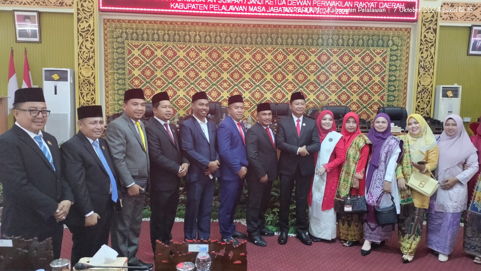 PELALAWAN – Melalui rapat paripurna di Gedung DPRD Kabupaten Pelalawan, telah dilaksanakan acara pengucapan sumpah/janji jabatan pimpinan DPRD Kabupaten Pelalawan masa jabatan 2024-2029. Pengambilan sumpah dipimpin oleh Ketua Pengadilan Negeri Pelalawan, Andry Simbolon, SH, MH. Pada acara tersebut, H. Syafrizal, SE dari Partai PDIP sebagai Ketua DPRD Kabupaten Pelalawan, dan Baharudin, SH, MH dari Partai Golkar sebagai Wakil Ketua DPRD. Prosesi ini menandai awal kepemimpinan DPRD Kabupaten Pelalawan untuk lima tahun ke depan, dengan penandatanganan berita acara pengambilan sumpah/janji. Senin (7/10/2024).